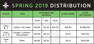 The 2019 spring distribution also includes an ANSCA Section 7(i) payment of $15.70 per share to Urban and At-large shareholders.
