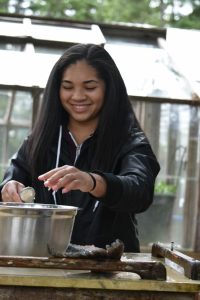 Most internships involve showing up in business casual or professional attire, but not for Odyssey Foods intern Janae Vieira. Once she arrives at the warehouse in Seattle’s industrial district, she takes off any jewelry and puts on a lab coat, hair net and rain boots. Vieira is the first Sealaska intern at Odyssey Foods, Sealaska’s seafood processing and packaging company in Seattle. Vieira’s internship required her to observe the operation and settings of each processing line and translate the information onto a spreadsheet. The process is complex and while that may not seem too exciting, her assistance has improved the efficiency and productivity of Odyssey Foods. Before a spreadsheet could be created, Vieira and her supervisor Jared Littlefield had to record all the various data for each item on the line such as belt speeds, auger speeds, batter viscosities and freezer times. “This task, in my opinion, is very important for our operation because before this collection of data, it was all based off a production employees’ memory.” Vieira is approaching her second year at the University of Puget Sound where she is currently pursuing a degree in exercise science and plays midfielder for the school’s soccer team. While exercise science may not be related to her Odyssey job, Janae is eager to learn. “This being my first internship, I did not know what to expect. But now that I have gained the experience, I would say that not only is it a learning tool but another social network as well. I have had the opportunity to meet an abundant amount of new people not just on the work side, but personally too.” Vieira applied for the internship to be able to work for a corporation that she also had cultural ties to. She had the chance to visit the land of her ancestors and the opportunity to listen to Tlingit elders and scholars David Katzeek and Paul Marks speak Tlingit during Sealaska’s intern development week in Juneau. She had never heard the language spoken before which made the experience so much more impacting. She also took notice of how much work needs to be done to revitalize the Alaskan Native culture. “Overall, I am very glad that I had the opportunity to be a Sealaska intern. I feel much closer to Sealaska than I did before and definitely plan on seeking opportunities with the company in the future.”