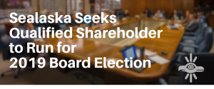 Sealaska is looking for qualified shareholders to run as board-endorsed nominees for the 2019 board election. There will be four positions up for election during the 2019 Annual Shareholder meeting. The board-endorsed candidates will most likely include a mix of incumbents and non-incumbents. The Board of Directors will make a final determination at the end of March.