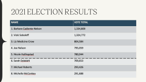 Board-endorsed candidate Sarah Dybdahl (Aan Shaawátk’i) was not elected.