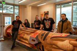After nearly eight months of carving, the project is set to be complete by late April, with the totem dedication expected to take place at the same time as the dedication of SHI’s new Heritage Square project in downtown Juneau, adjacent to Sealaska’s corporate headquarters. These events are planned to occur during SHI’s Celebration event June 7-11, although a specific date and time has not yet been announced.